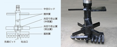 | 共回り防止機構 | 共回り防止翼を十字に装備した本工法独自の防止機構 | |