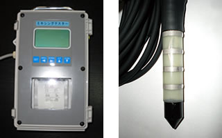 プローブ(比抵抗先端部)をSSロッドに装着しコラム中心に挿入し、ミキシングテスター(比抵抗測定器)にて改良体底部まで、25cm間隔で改良体の品質を調べます。